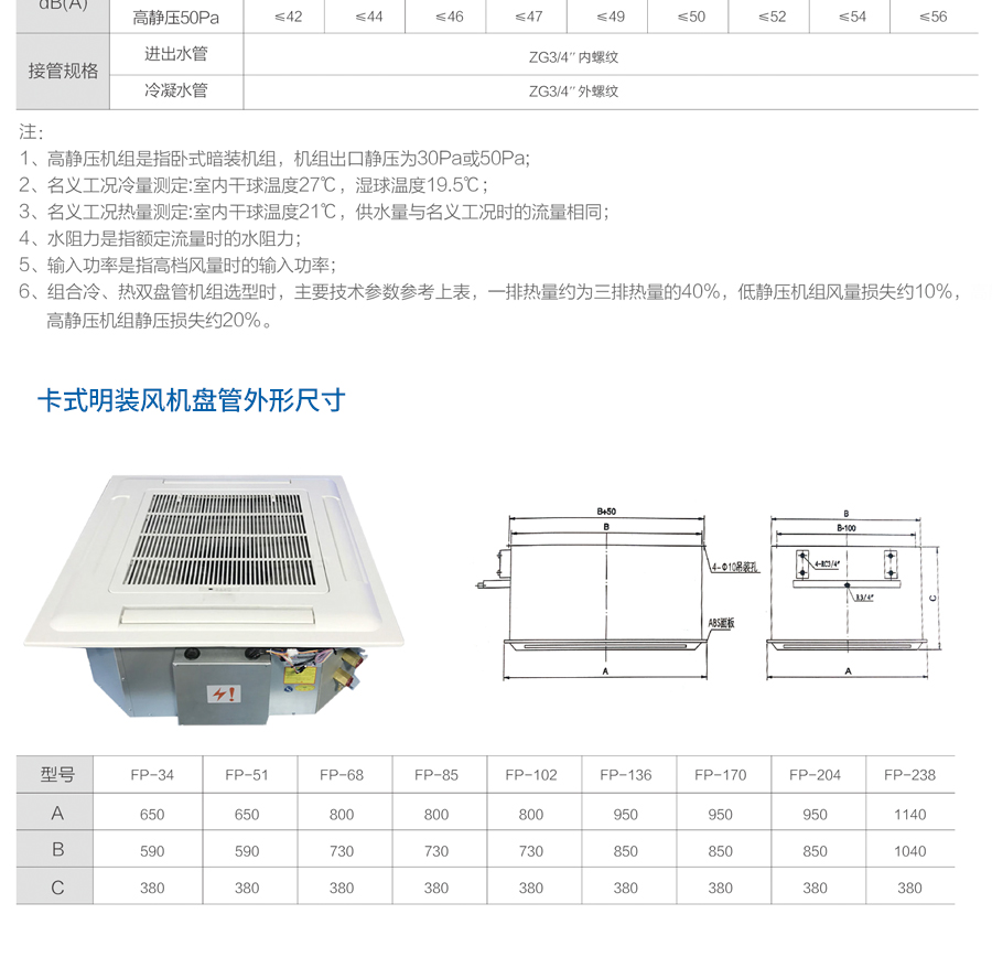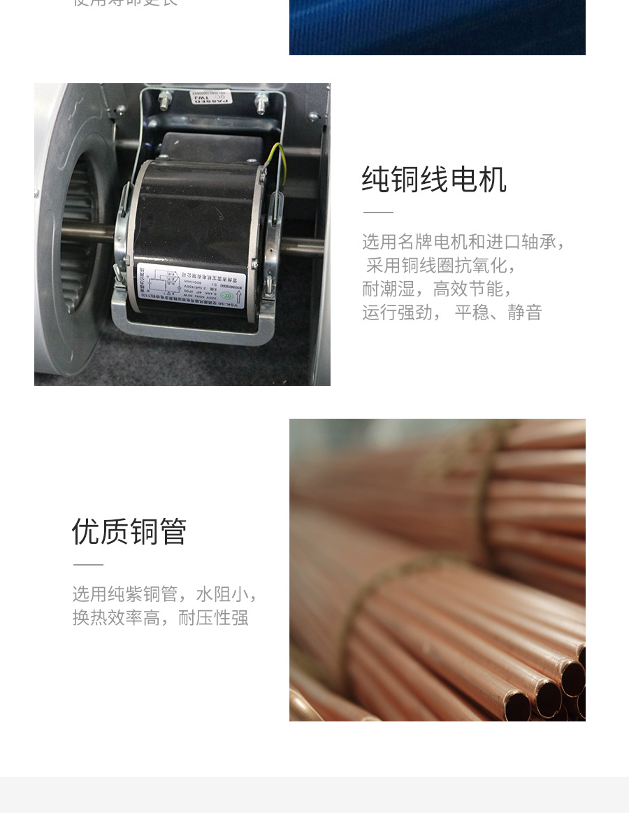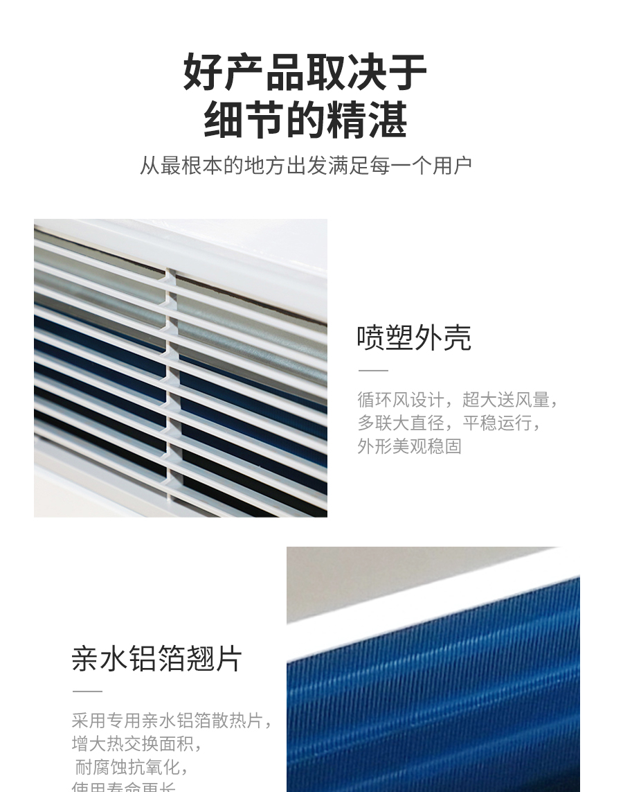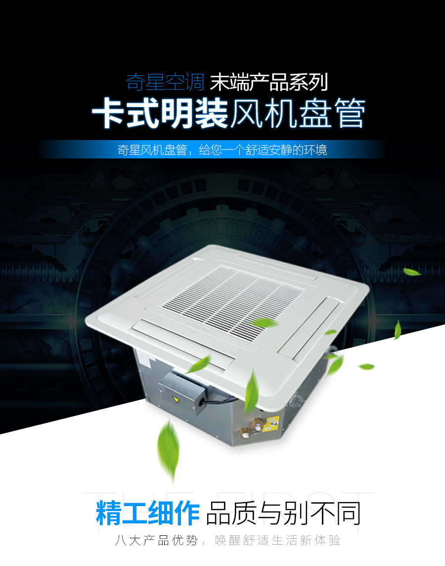 該機組具有體積小、效率高、噪音低、能耗低、機體結構精致,緊湊,堅固耐用,盤管采用鍍鋅板機殼,冷凝水盤采用一次沖壓成型,無焊縫、焊點,整體模壓保溫,保溫不起翹,不脫落,完全避免凝水盤二次水滴漏。